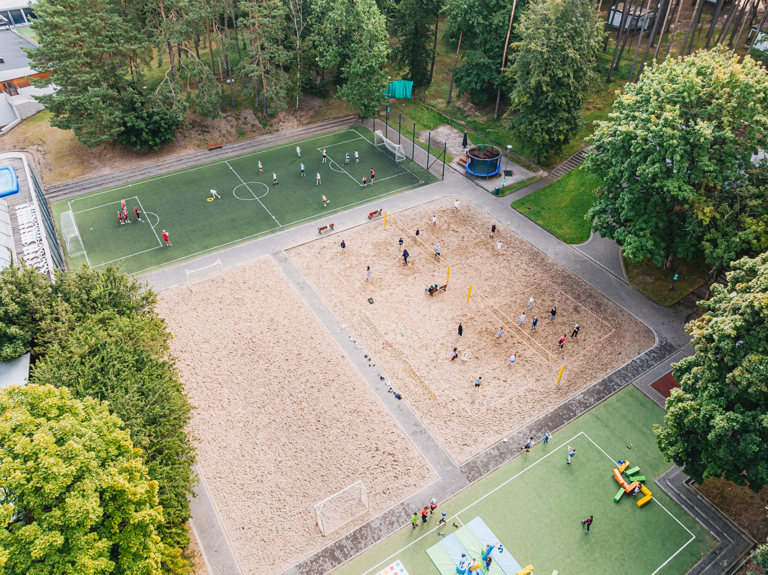 – boiska do siatkówki plażowej (nasze główne miejsce treningów na piasku), a także boiska do piłki nożnej i koszykówki, zapewniające mnóstwo miejsca do rywalizacji turniejowej.